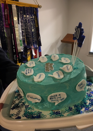 To celebrate this milestone, President Gary arranged for a special cake to be made by Megan for everyone to enjoy at supper.