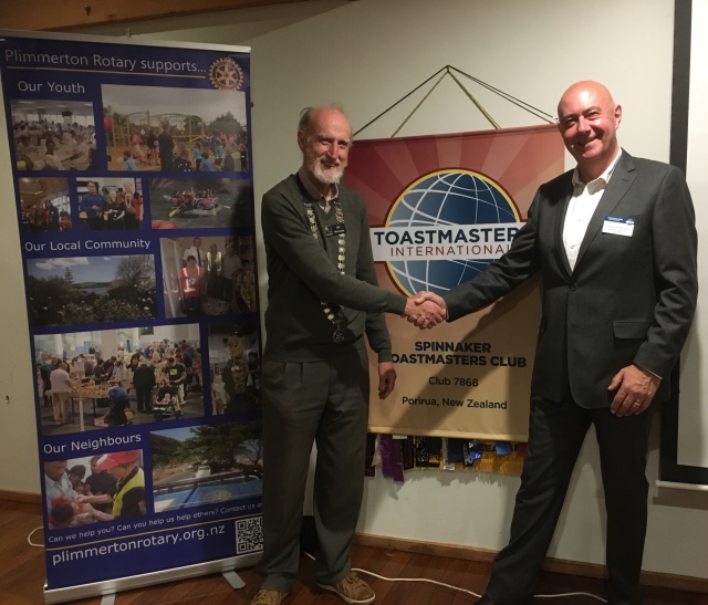 The President of Plimmerton Rotary Bill McAuley congratulated Spinnaker’s President Gary Nicholson on an informative and entertaining glimpse into the world of Toastmasters.