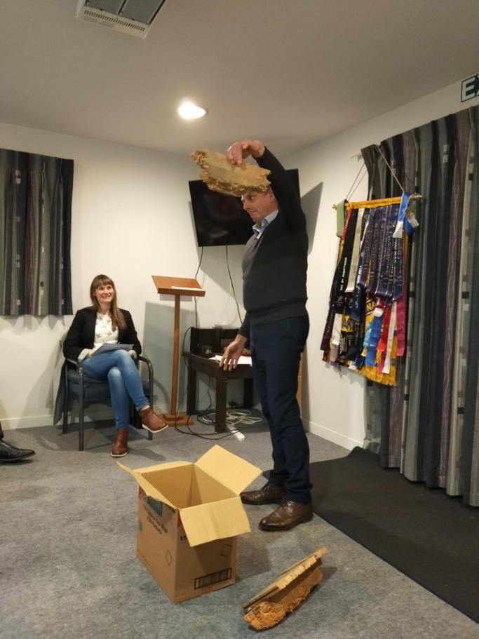 Dave was the last speech tonight with the title ‘No Projects in 2021’, which was a second chapter of a previous speech he delivered last year titled ‘No Projects in 2020’. He kept the audience engaged as he told the story of a friend looking under the house, cutting a hole in the floor boards… and his discovery…. His use of props was well done and the audience was wondering til the end what was in the box!!