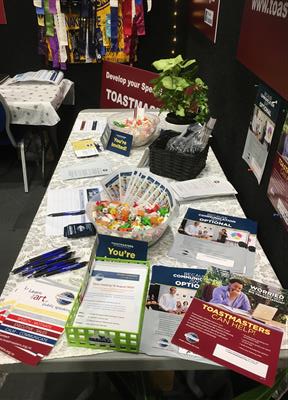 Everyone said they found it easy to talk to people, to raise awareness of Toastmasters and of our club. Angela said the people who stopped and talked to us were genuinely interested and it didn’t take long to find a common point or need that a Toastmasters club could help them with. Our visually attractive booth was inviting and the District posters certainly brought the booth alive.