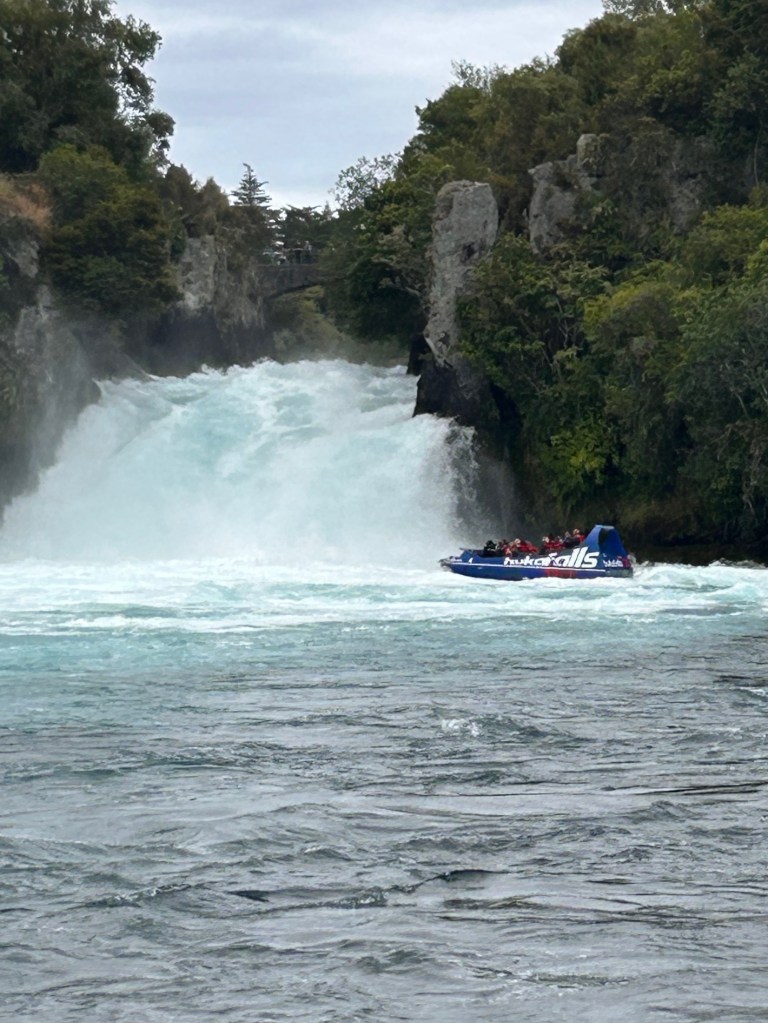 Table Topics run by Dale followed the theme of “holidays in retrospect” where each speaker was asked about an aspect of their recent holidays. Evaluator Jocelyn thought Helen was the best speaker talking about her 3 disasters during the holidays! Pictured above is the Huka Falls Jet under the falls near Taupo – taken by Dale from the river cruise boat.