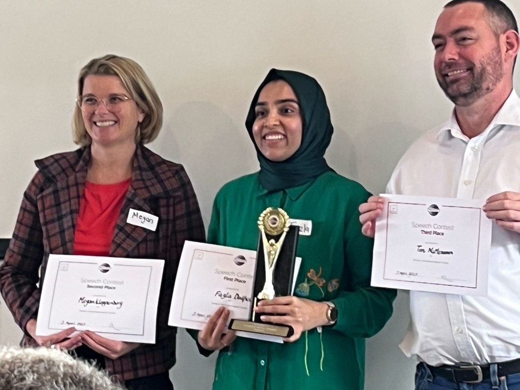 Megan came 2nd in the International Prepared Speech Contest, and now goes on to compete in the District 72 contests on Saturday 10 May at Parliament. Fantastic achievement Megan, and good luck.