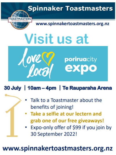 The purpose of this blog series is to fulfil the requirements of the Level 4 Elective “Write a Compelling Blog” in the Motivational Strategies Pathway. She has chosen to document the process of organising and presenting a booth at the Love Local Porirua 2022 Expo being held in Porirua on 30 July. The target audience is her fellow Toastmasters who may have an opportunity to run a similar activity at a future event. To do this, a minimum of 8 blog posts must be created and published. Club members will be asked for feedback, and when done, Dale will deliver a short speech on her blogging experiences.