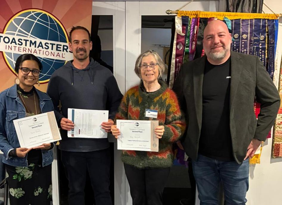 Spinnaker Toastmasters scored a trio of 2nds at the Division Speech Contests held on Saturday 21 March 2026.